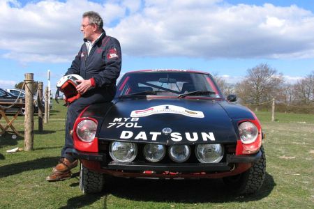 Goodwood persdag 2007 Tony Fall, rallyrijder, met een prachtige Datsun 240Z